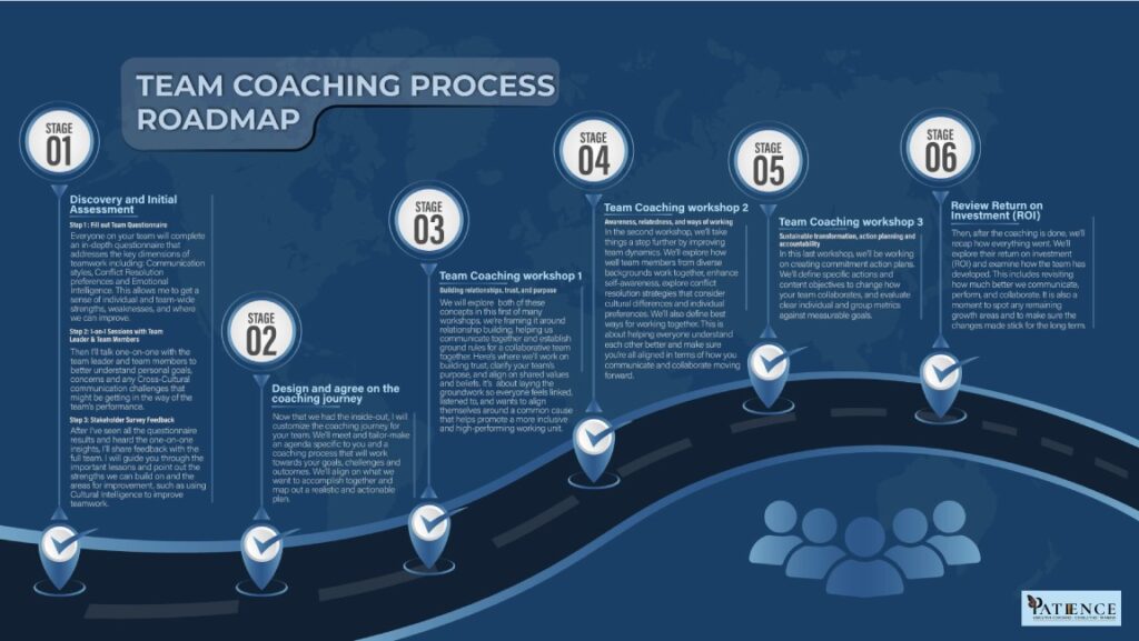 Team facilitation is about helping a team to have conversations, manage group discussions, and reach decisions. While a coach may use facilitative skills, team coaching goes beyond this. It enables every aspect of the process or solution to be in the team's hands, giving members tools that improve performance and facilitate greater effectiveness in problem-solving. PATIENCE